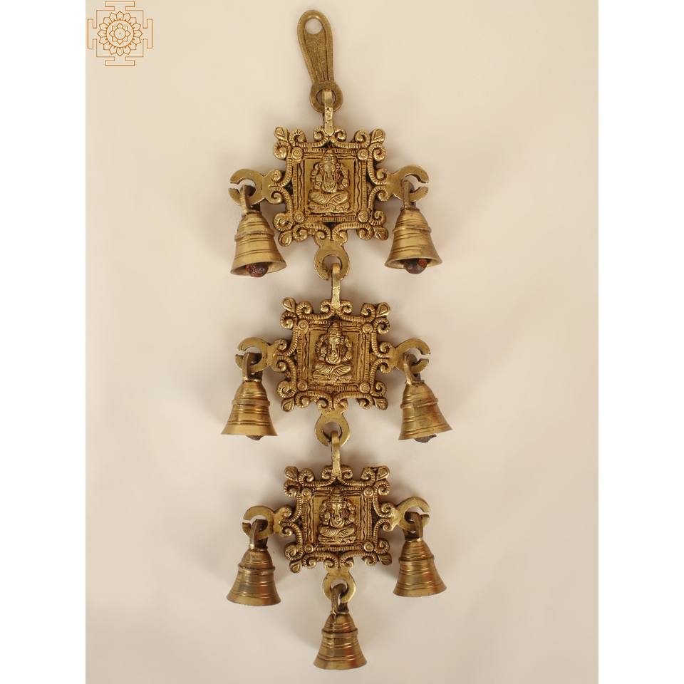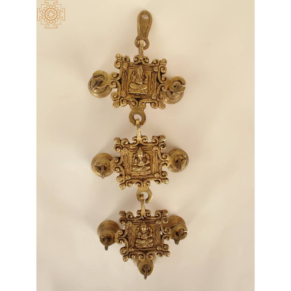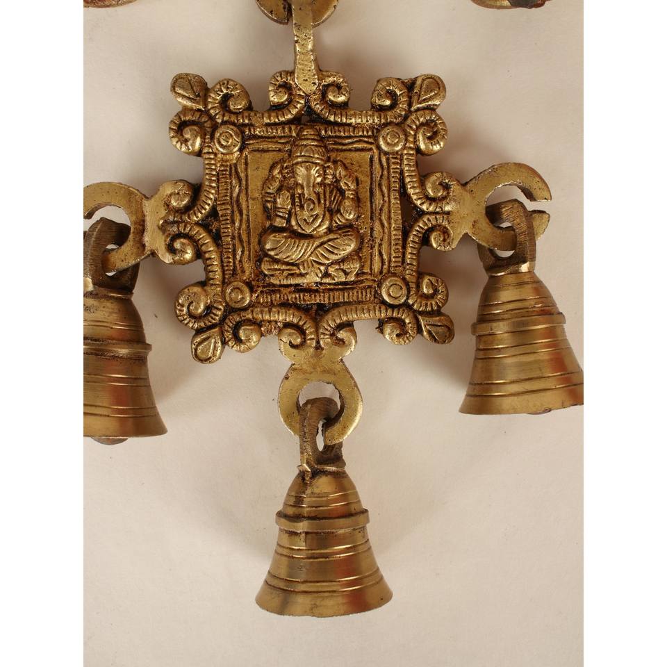 กระดิ่งแขวนผนังดีไซน์พระพิฆเนศทองเหลืองขนาด14นิ้วทำด้วยมือผลิตในอินเดีย