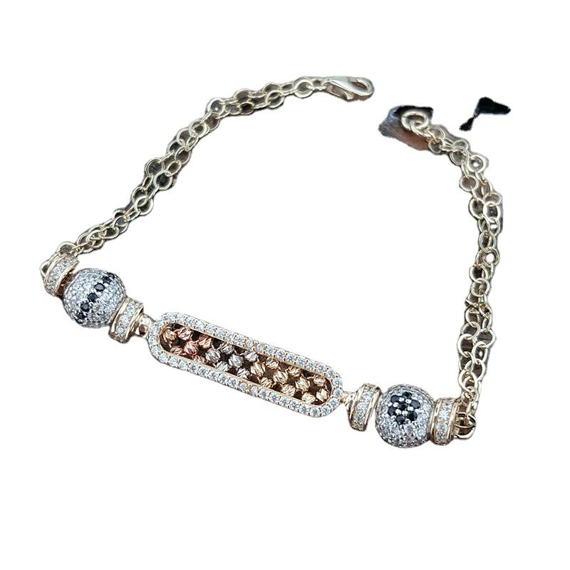 สร้อยข้อมือแบบถักเคลือบไตรสี14K ทำด้วยมือพร้อมเพทายสำหรับงานแต่งงานงานหมั้นหรือของขวัญครบรอบ