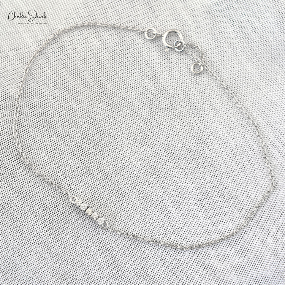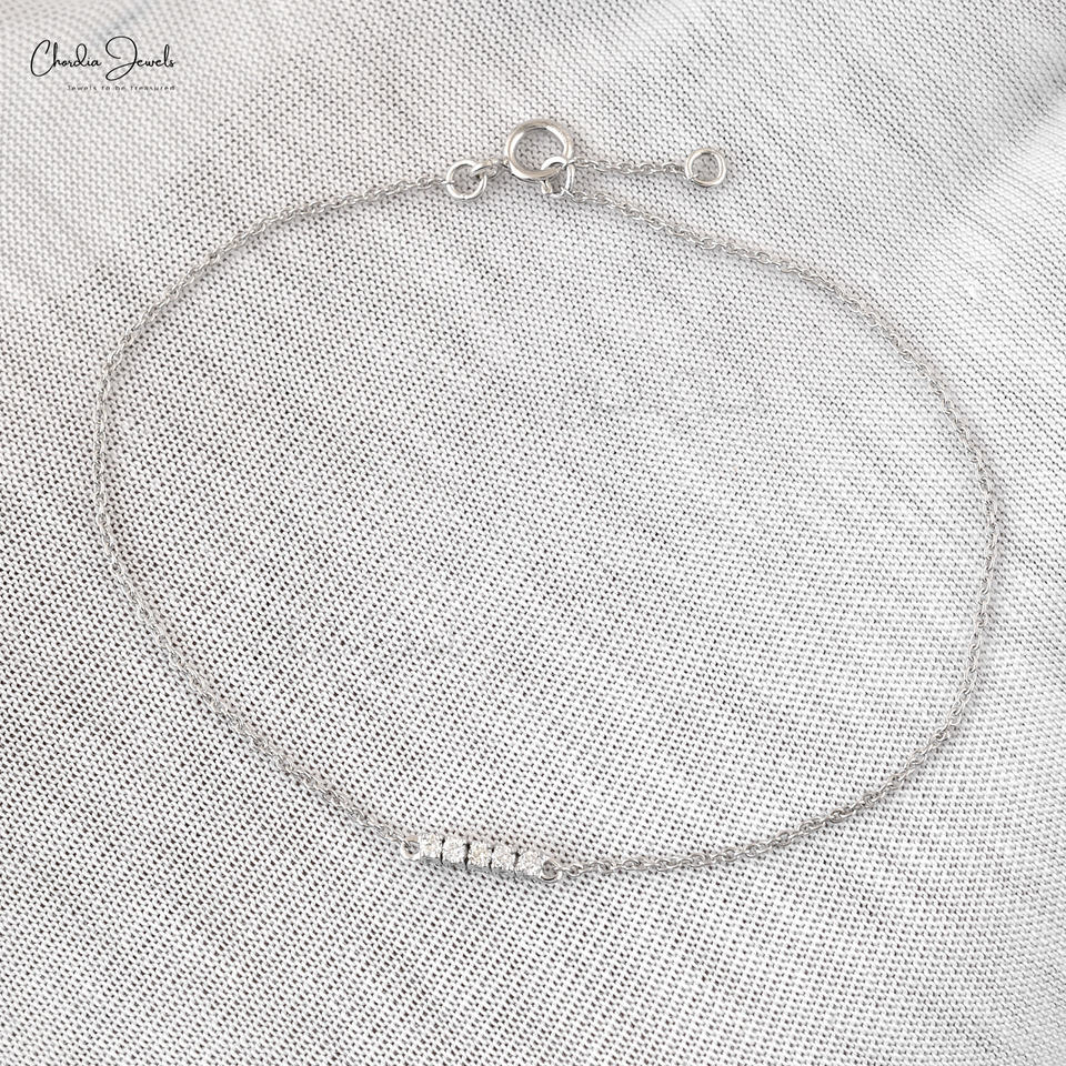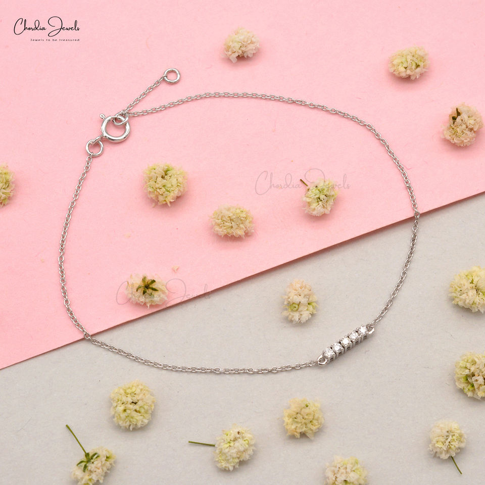 สร้อยข้อมือแฮนด์เมดสีขาวบริสุทธิ์14K สร้อยข้อมือแต่งงานสไตล์มินิมอลขนาด1.5มม. สร้อยข้อมือเพชรกลมประดับอัญมณีประจำวัน