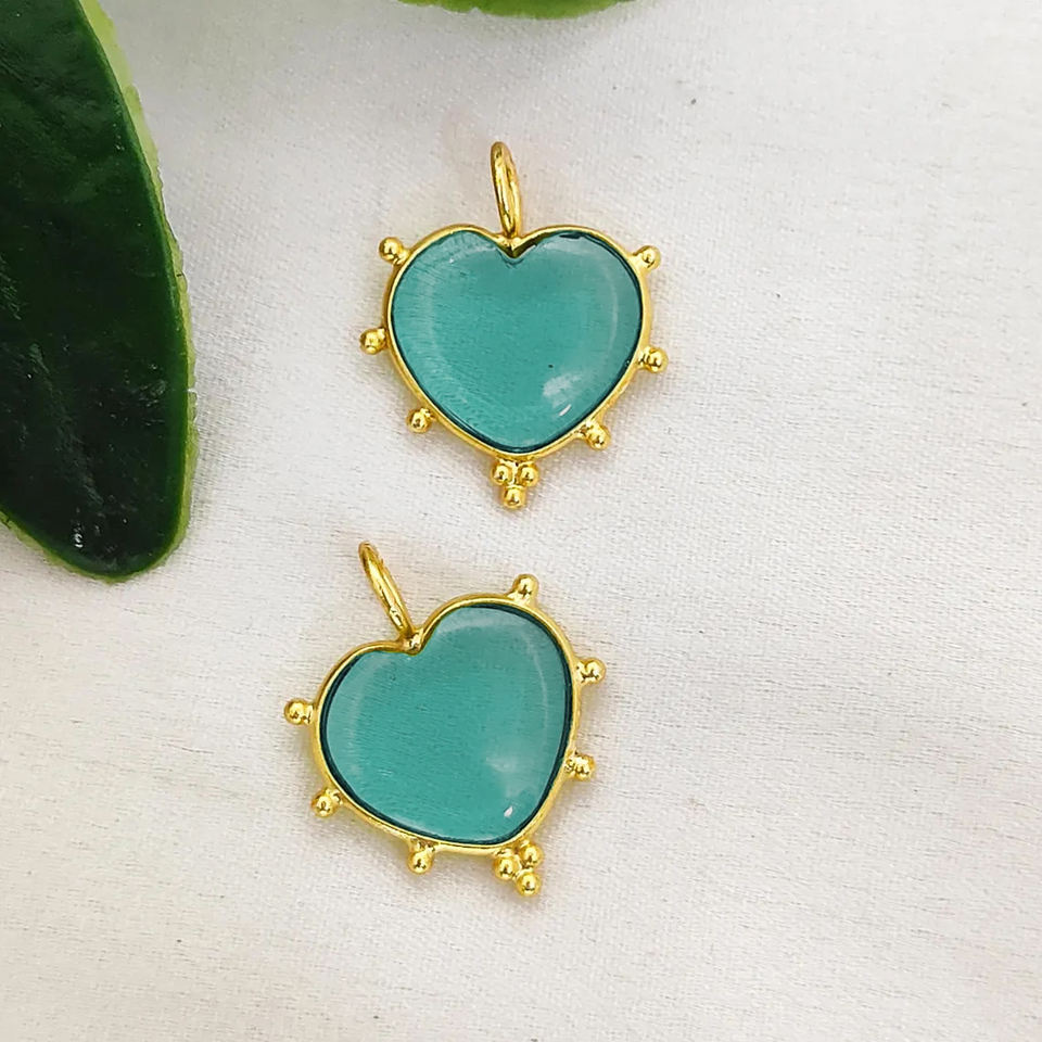 จี้หัวใจควอทซ์สีฟ้า14มม. ทำด้วยมือ925เงินสเตอร์ลิงชุบทองแฟนซีขอบอความารีนเครื่องประดับขายส่ง