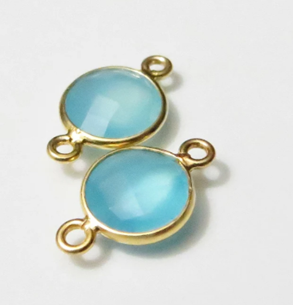 ชุดเครื่องประดับสไตล์วินเทจเคลือบสีเงินแบบสองชั้นขั้วต่อขอบพลอยคาลซิโดนี15มม. งานแฮนด์เมด