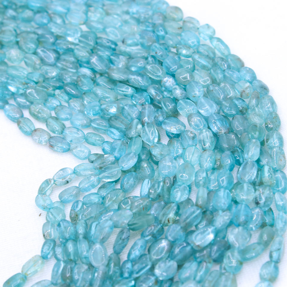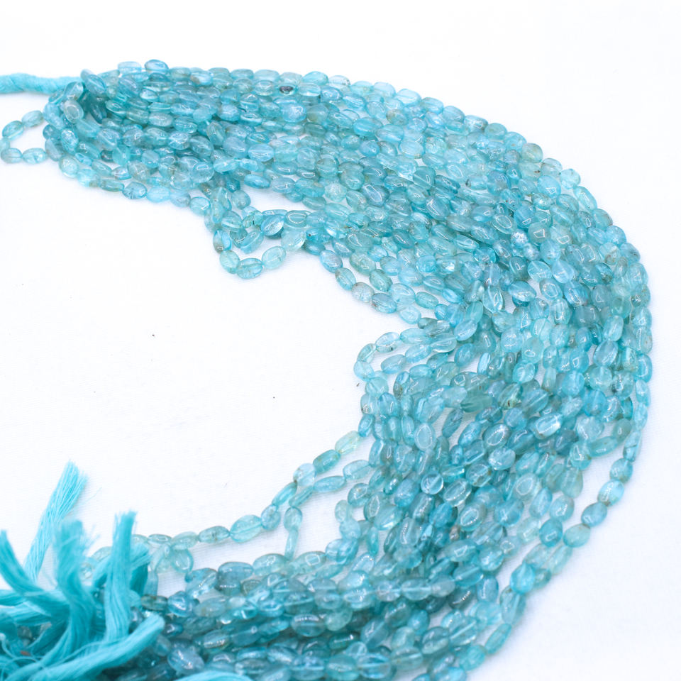 ลูกปัดอะพาไทต์สีน้ำเงินธรรมชาติทรงรีเจียระไนแบบคาโบชอง 17 เส้น ทำด้วยมือ ได้รับการรับรองจาก GIA คุณภาพสูง หรูหรา สำหรับทำเครื่องประดับ