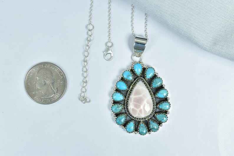 ทำด้วยมือ18นิ้วปรับโซ่ทองชุบชมพู Larimar เงินสเตอร์ลิงจี้อัญมณีสีเขียวขุ่นสร้อยคอ