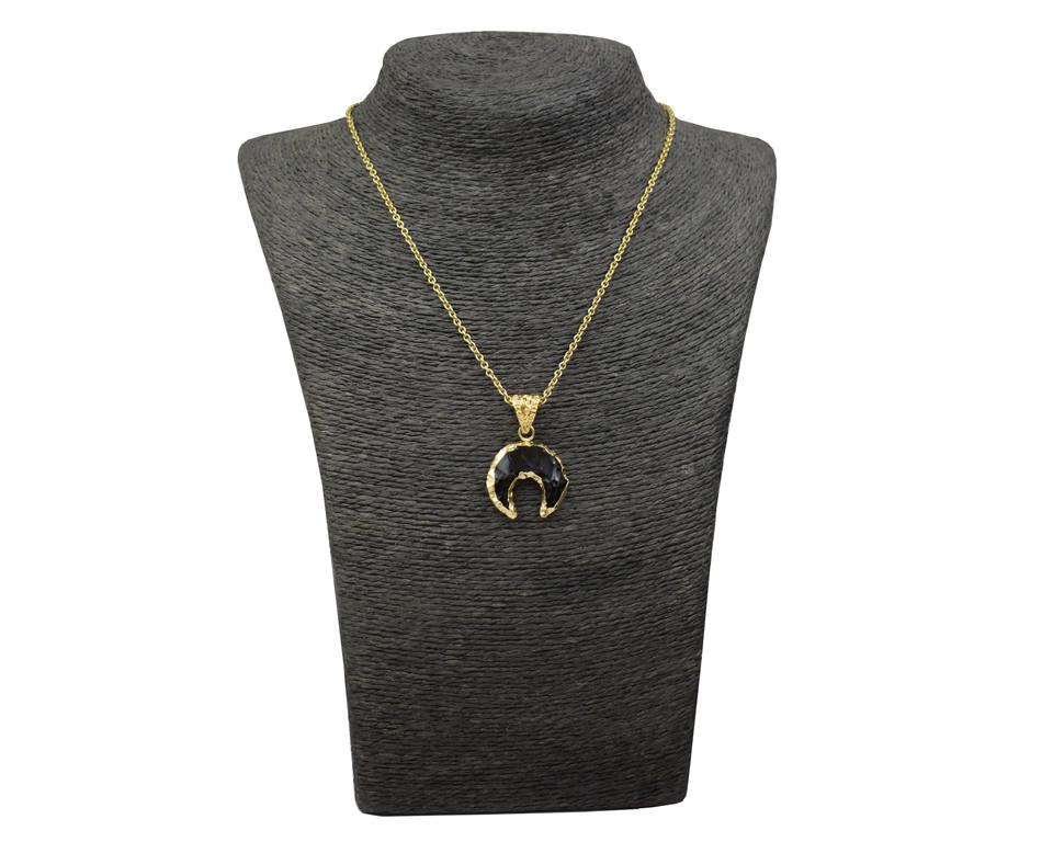 จี้รูปพระจันทร์เสี้ยวชุบทองอัญมณีสีดำ