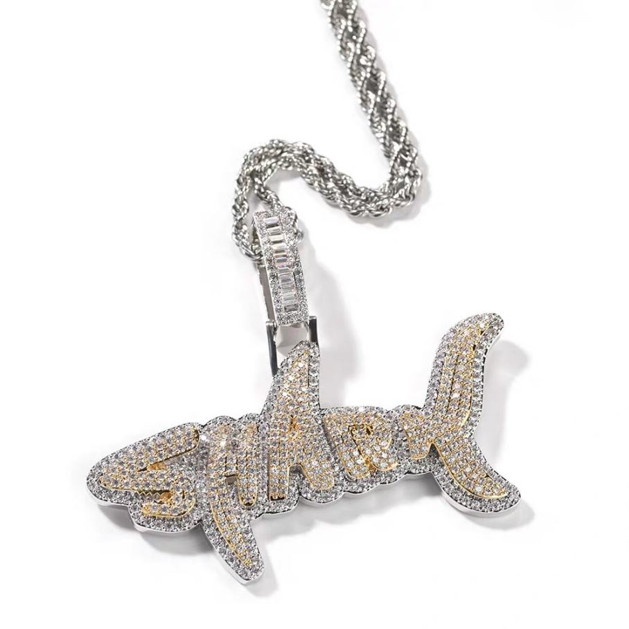 จี้รูปฉลามทำมือจากทองคำแท้ 18K ประดับเพชรคิวบิกเซอร์โคเนีย พร้อมสร้อยคิวบันชุบทองแดง จี้ดีไซน์เฉพาะตัว สร้อยคอเสน่ห์อันเป็นเอกลักษณ์