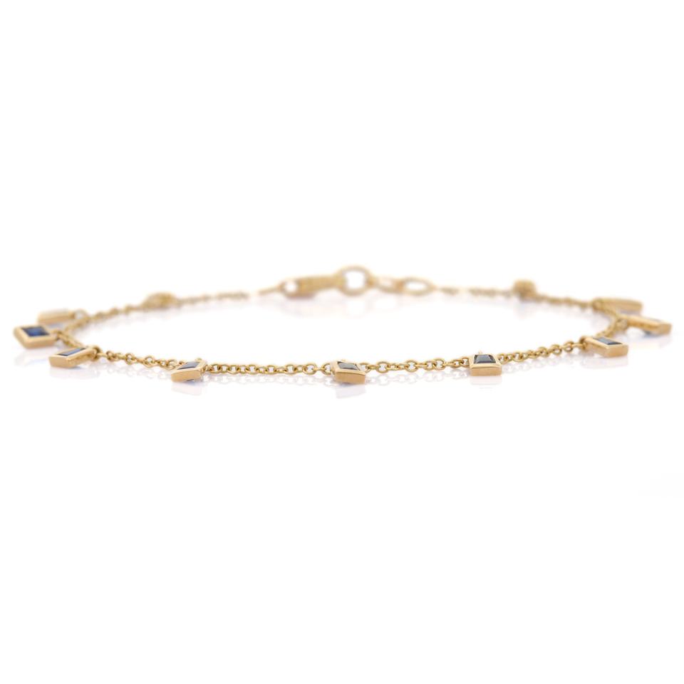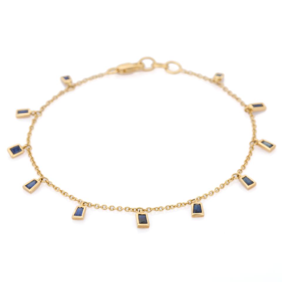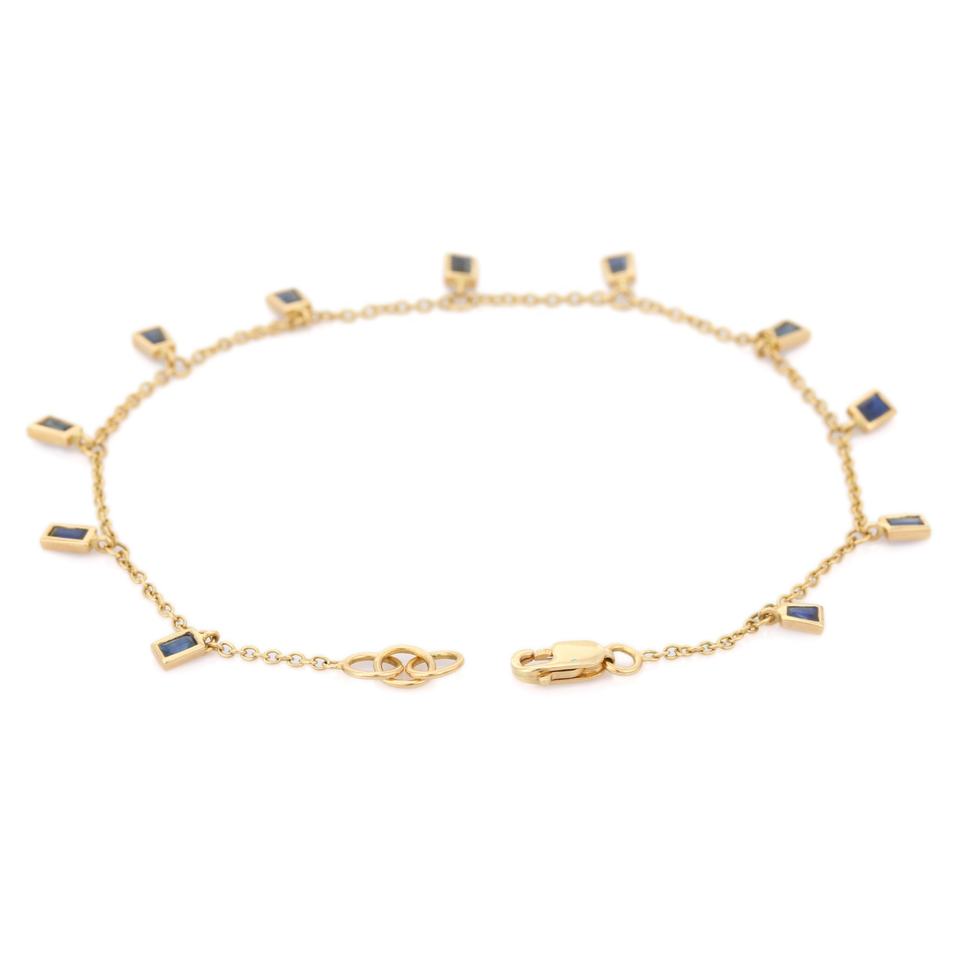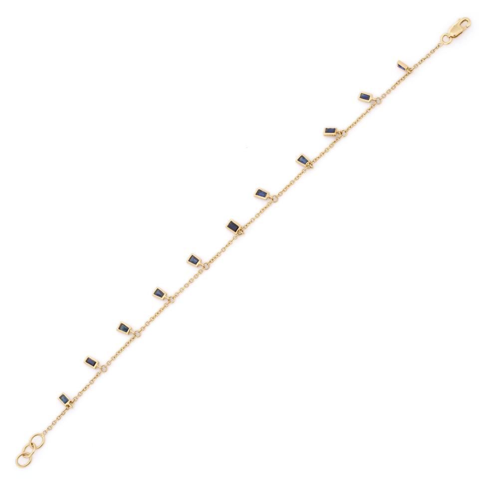 ทำด้วยมือ18K สร้อยข้อมือทองคำแท้สีเหลืองเรียบง่ายพลอยแซฟไฟร์สีฟ้าธรรมชาติของขวัญแต่งงานสไตล์อินเทรนด์สำหรับแขก
