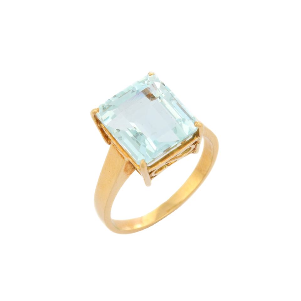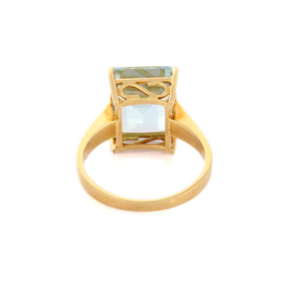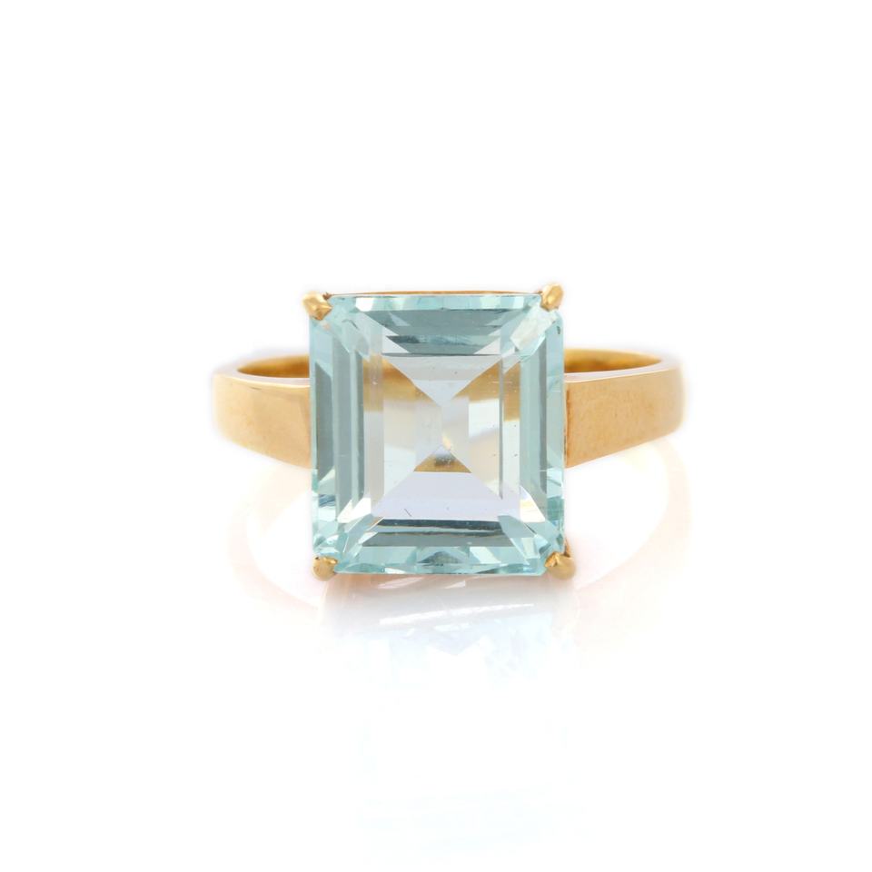 แหวนเพชรเม็ดเดี่ยวสีทอง18K ทำด้วยมือเครื่องประดับแฟชั่นพลอยอความารีนแปดเหลี่ยมธรรมชาติสำหรับวันครบรอบแต่งงานของผู้ชาย