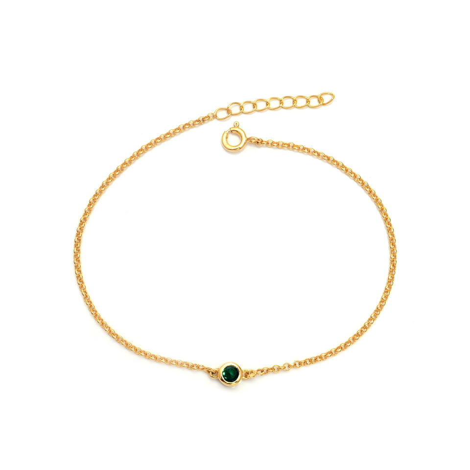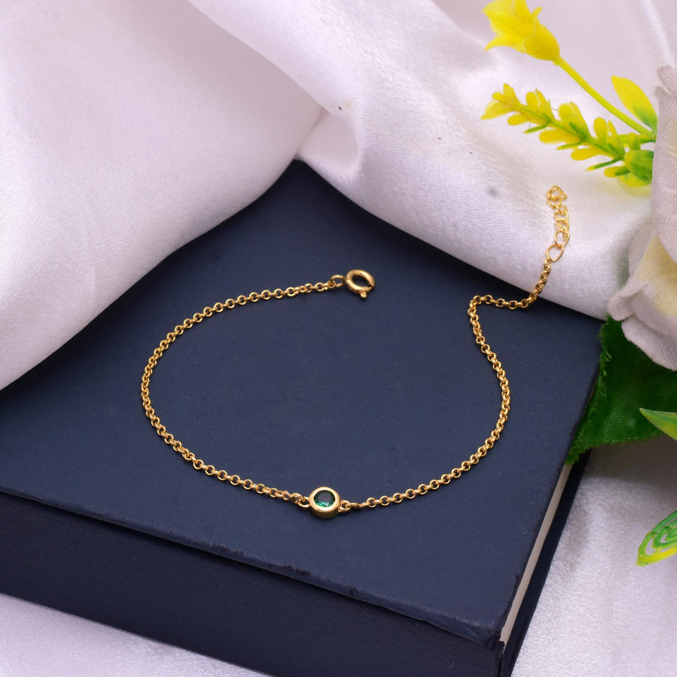 แฮนด์เมดคลาสสิก18K ชุปทองธรรมชาติสีเขียวนิลขนาดเล็กอัญมณีสีเขียวสร้อยข้อมือโซ่เงิน925ทึบของขวัญสำหรับงานปาร์ตี้