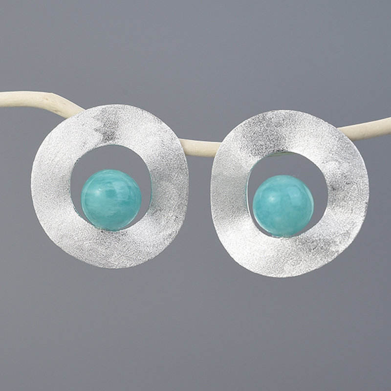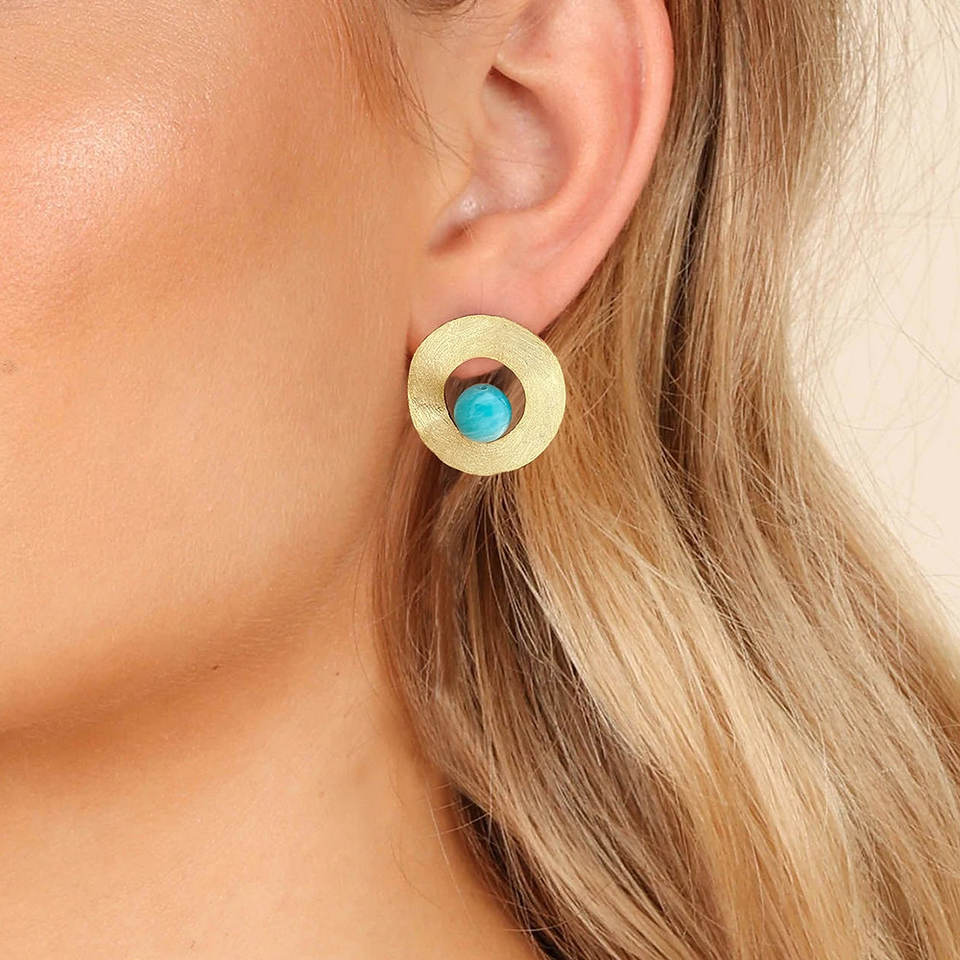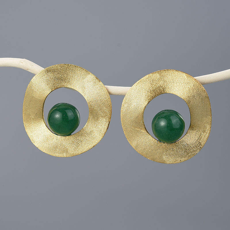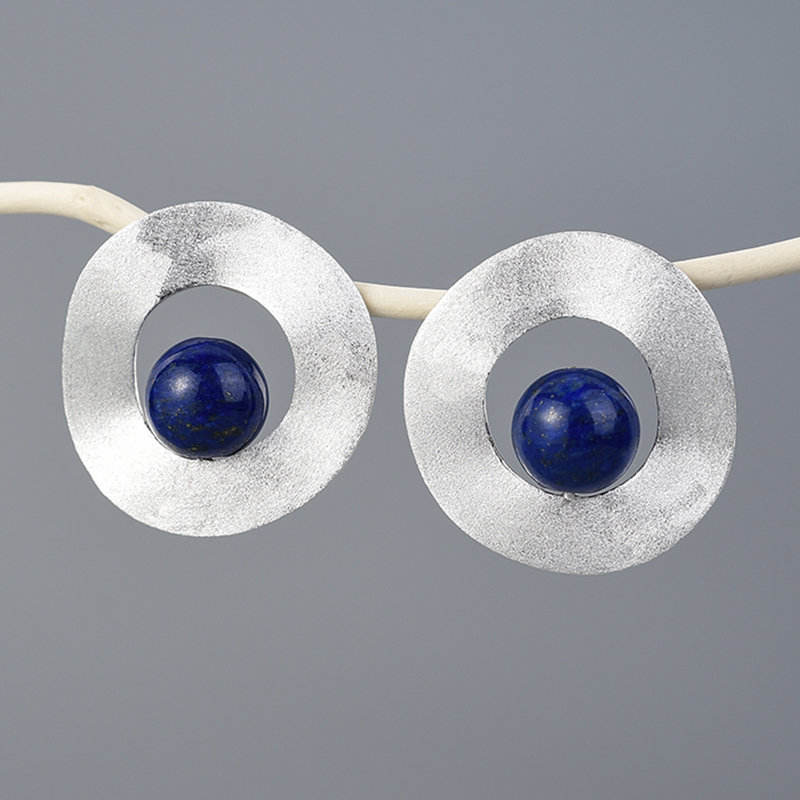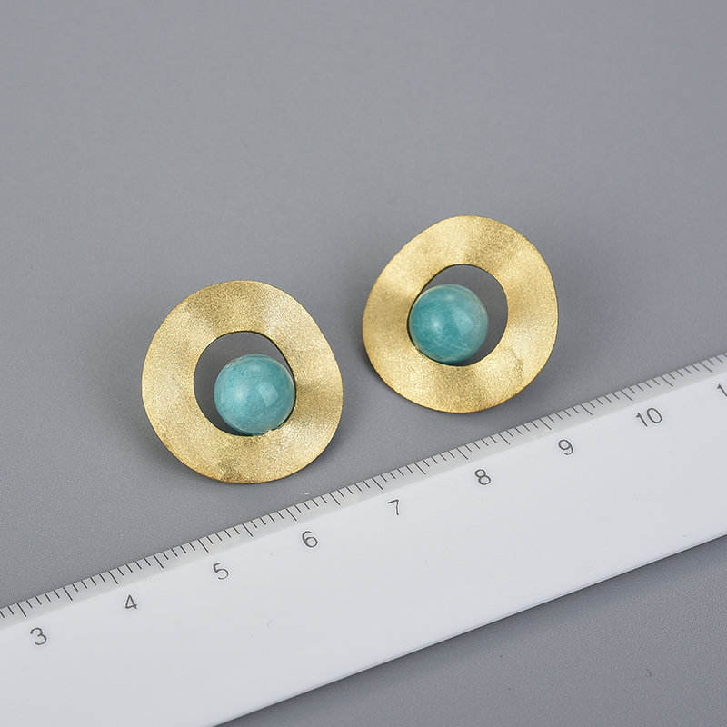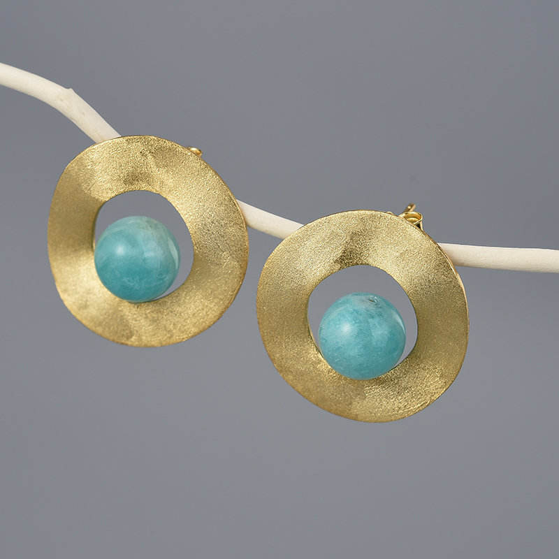 ต่างหูแบบติดหู ทำด้วยมือ ชุบทอง 18k ประดับด้วยลาพิส ลาซูลี อเมซอนไนต์ และอะเวนเจอรีน ดีไซน์เรขาคณิต ผลิตจากโลหะผสมสังกะสี