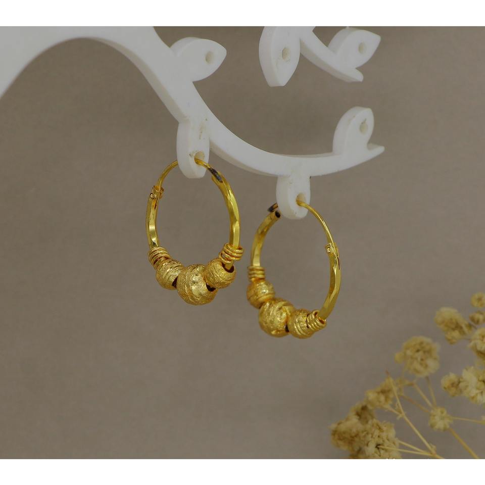 ต่างหูห่วงประดับลูกปัดหลายเม็ด ชุบทอง 24K ทำมือ สไตล์อินเดีย บาหลี เหมาะสำหรับงานเทศกาล งานแต่งงาน สำหรับผู้หญิงและเด็กผู้หญิง ทำจากโลหะผสม บาหลี