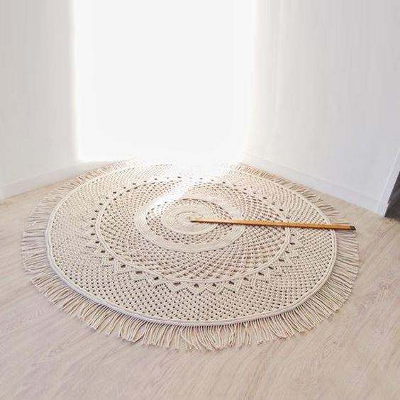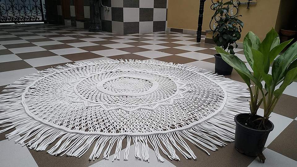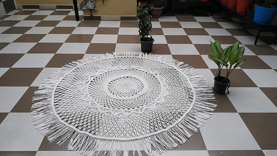 พรมผ้าฝ้ายถักลาย DIA macrame ยาว2เมตรแบบดั้งเดิมเปลเด็กทารกห้องนอนโรงแรม Rooms-JNC-RU01-CR นั่งเล่น