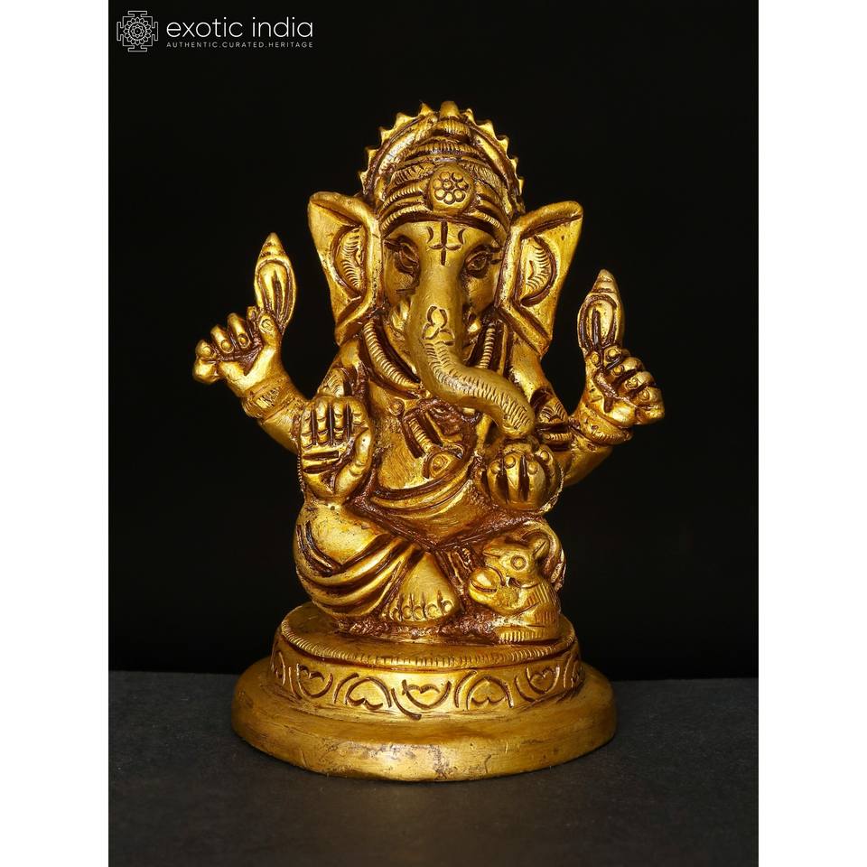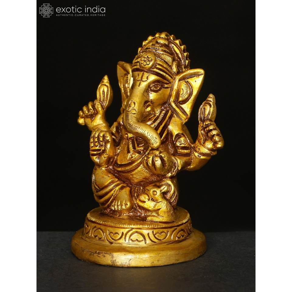 รูปปั้นพระพิฆเนศทองเหลืองขนาด3นิ้วงานแฮนด์เมดรูปปั้นพระพิฆเนศออกแบบแบบดั้งเดิมสำหรับตกแต่งบ้านทำจากงานฝีมือโลหะขนาดเล็กในอินเดียสำหรับวันเกิด