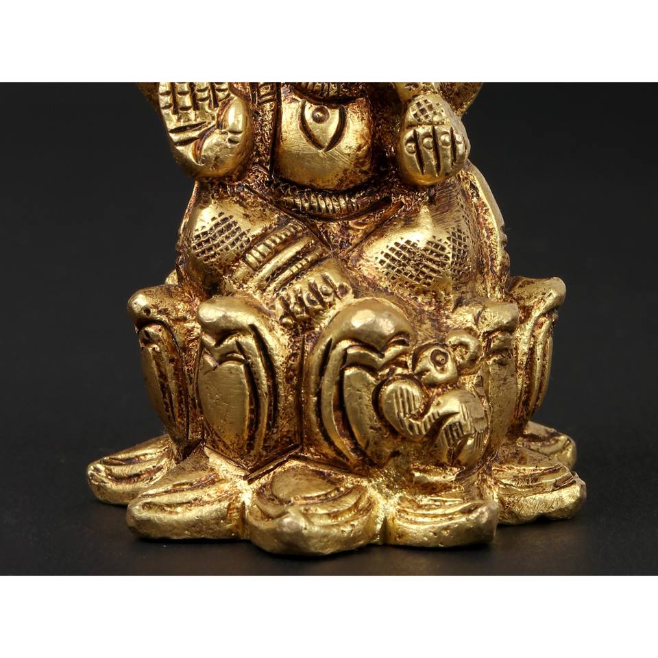 รูปปั้นพระพิฆเนศทองเหลืองขนาด3นิ้วทำด้วยมือวางบนประติมากรรมศิลปะดอกบัวจากอินเดีย