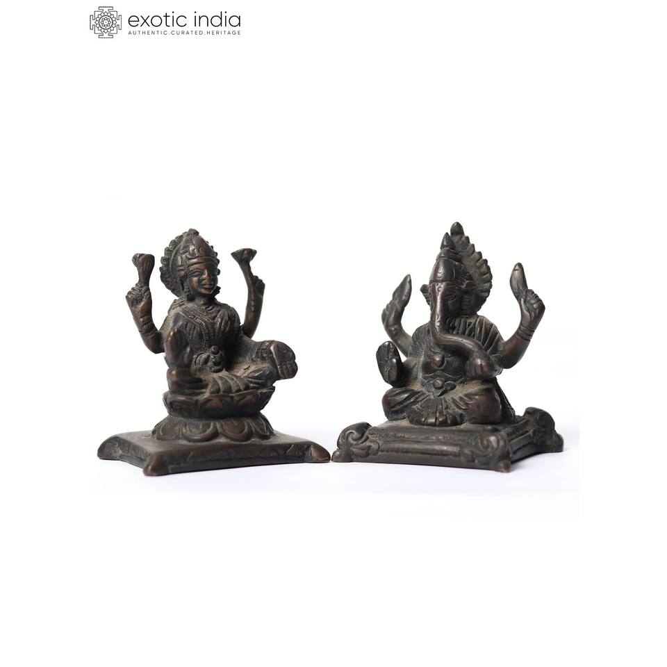 รูปปั้นพระลักษมีพระพิฆเนศทองเหลืองขนาด3นิ้วทำด้วยมือทำในอินเดีย