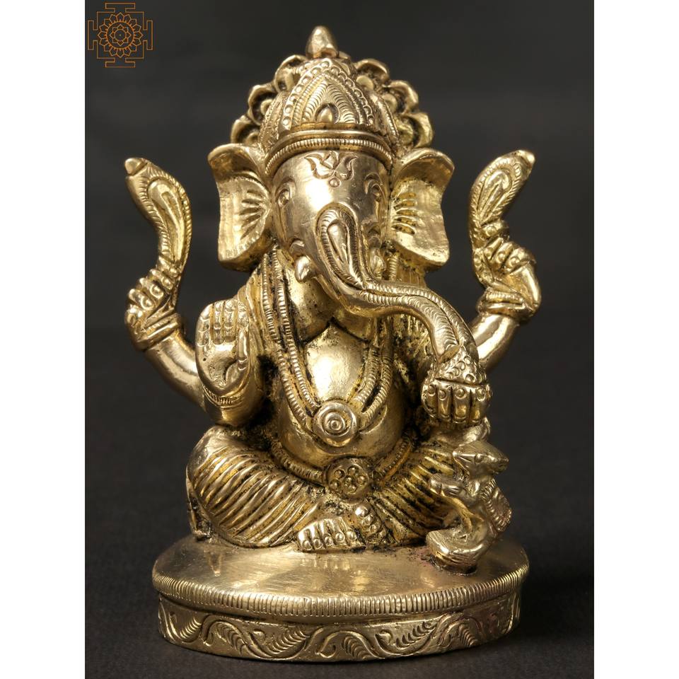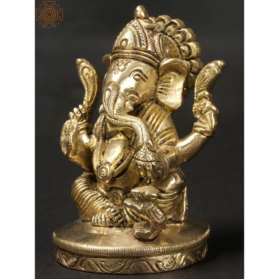 รูปปั้นพระพิฆเนศขนาดเล็ก3นิ้วทำด้วยมือรูปปั้นทองสัมฤทธิ์รูปปั้นอินเดียสินค้าผลิตในอินเดีย