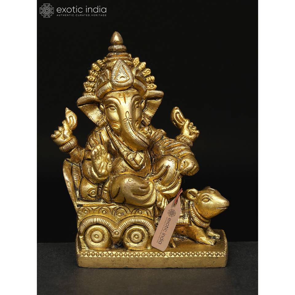 รูปปั้นพระพิฆเนศทำด้วยมือขนาด3นิ้วรูปปั้นขนาดเล็กทำจากทองเหลืองสำหรับเป็นของขวัญผลิตในอินเดีย