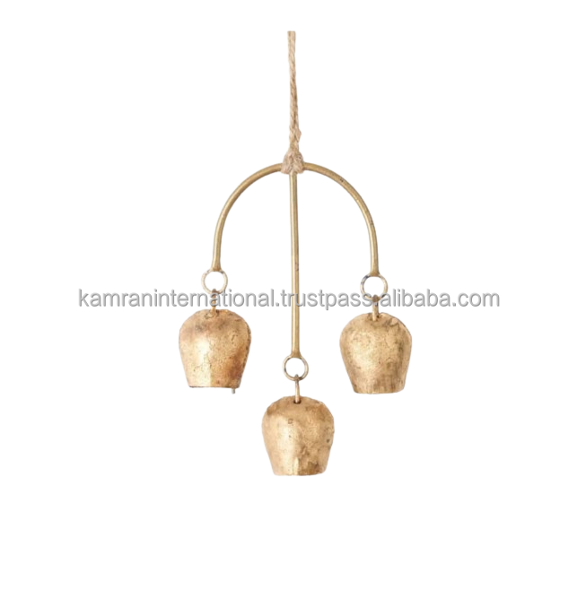 ทำด้วยมือ3ชิ้นโบราณ/ชนบทดนตรีระฆังดีบุกสัตว์เลี้ยงทองงานฝีมือโลหะทำด้วยมือแขวนสำหรับเป็นมิตรกับสิ่งแวดล้อมบ้าน