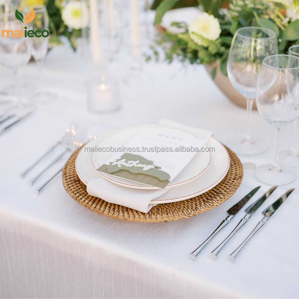 คำอธิบาย:แผ่นรองจานบนโต๊ะหวายสำหรับรับประทานอาหารงานแต่งงานที่บ้าน