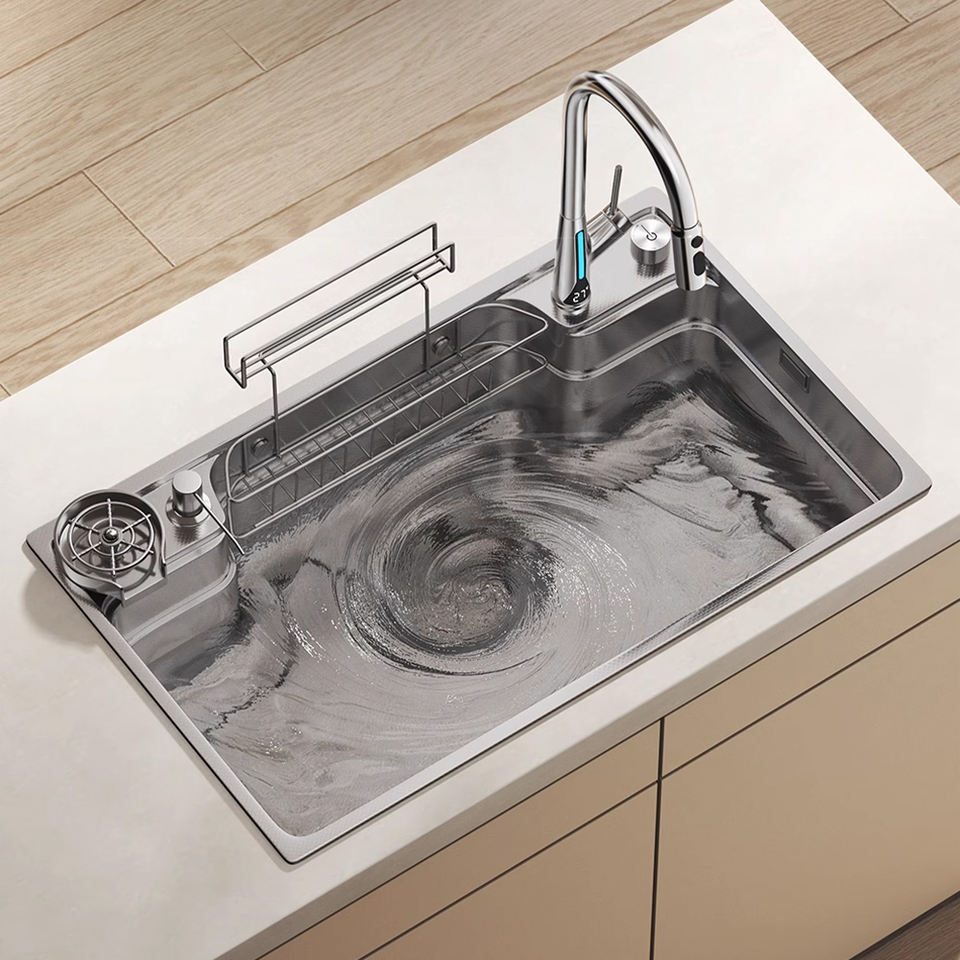 อ่างล้างจานสแตนเลส 304 ทำมือ ขนาดใหญ่ แบบหลุมเดียว ผิวขัดเงา ดีไซน์แบบติดตั้งบนเคาน์เตอร์ รับประกัน 5 ปี ทำความสะอาดง่าย