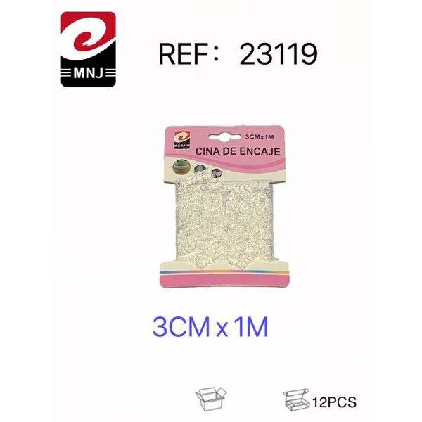 ลูกไม้ตกแต่งทำมือขนาด 3 ซม. พร้อมสายรัด CINA DE ENCAJE 3CMX1M อุปกรณ์งานฝีมือ