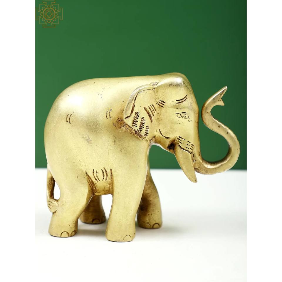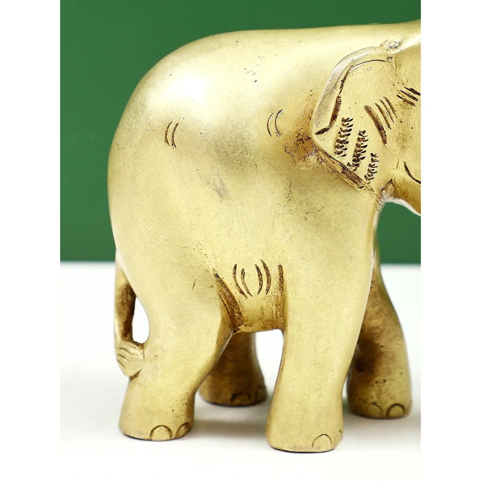 รูปปั้นช้างทองเหลืองขนาด4นิ้วทำด้วยมือพร้อมลำต้นของตกแต่งบ้านขนาดเล็ก