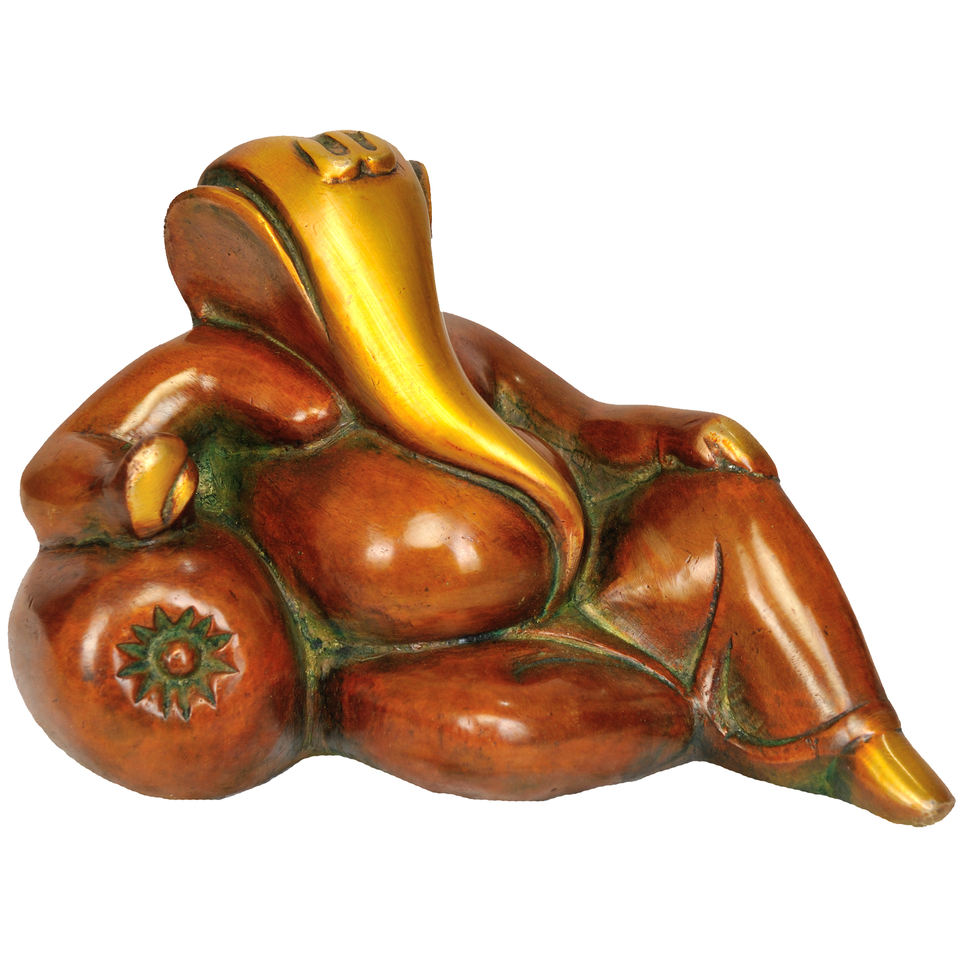 ประติมากรรมพระพิฆเนศทองเหลืองขนาด4นิ้วทำด้วยมือรูปเงาดำศักดิ์สิทธิ์ผลิตในอินเดีย