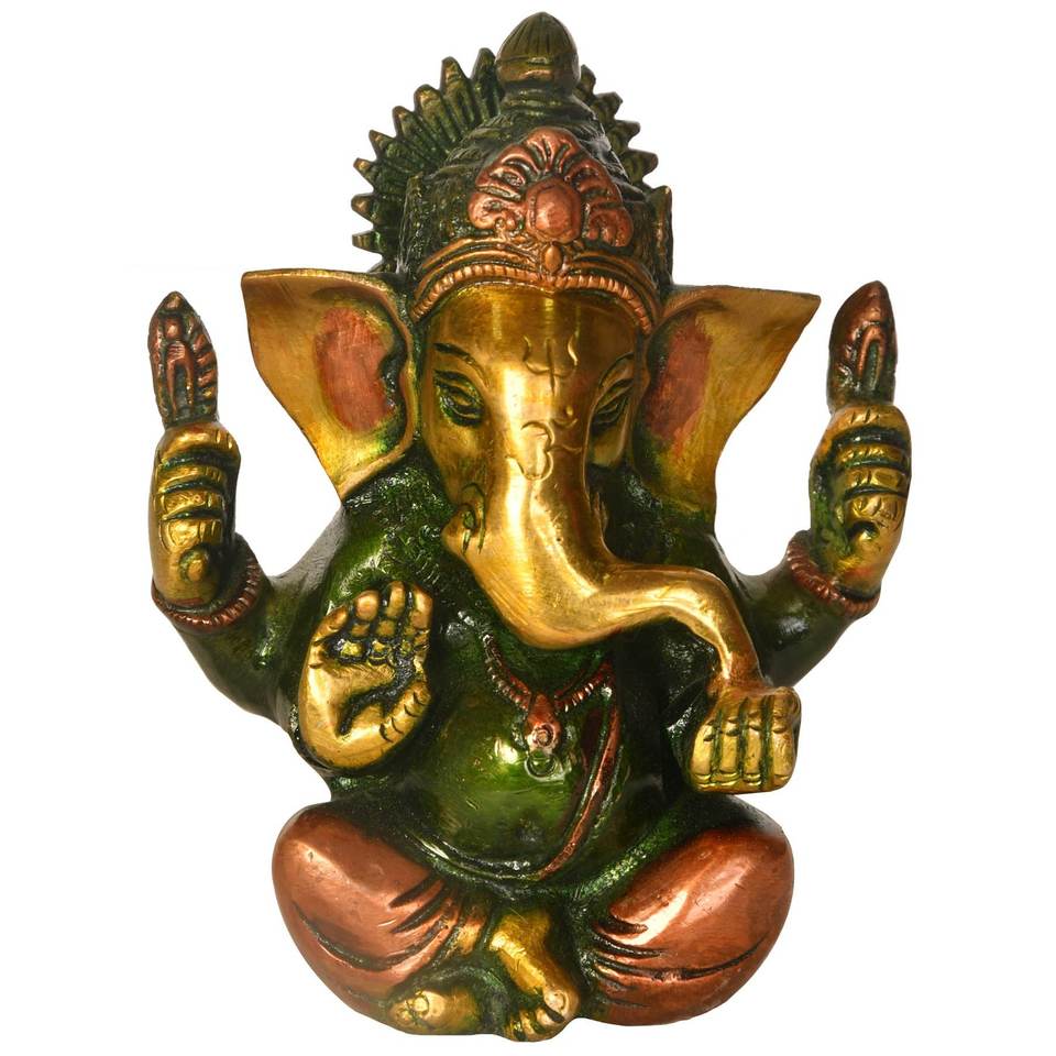รูปปั้นพระพิฆเนศทองเหลืองขนาด4นิ้วทำด้วยมือสำหรับเป็นของขวัญผลิตในอินเดีย