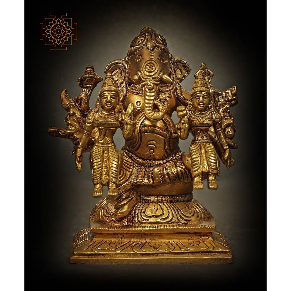 รูปปั้นพระพิฆเนศทองเหลืองขนาด4นิ้วทำด้วยมือพร้อมรูปปั้นขนาดเล็กสำหรับทำเป็นของขวัญในอินเดีย