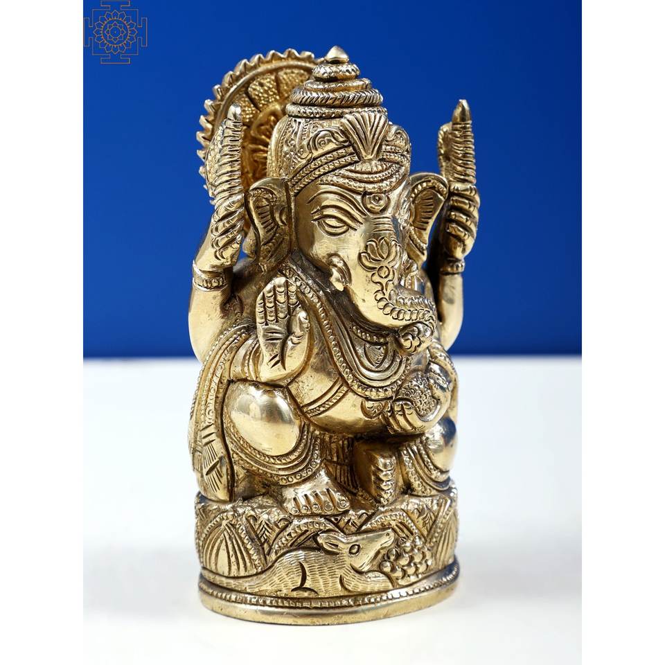 รูปปั้นพระพิฆเนศคุณภาพสูงทำด้วยมือขนาด4นิ้วทำจากทองเหลืองขนาดเล็กผลิตในอินเดีย