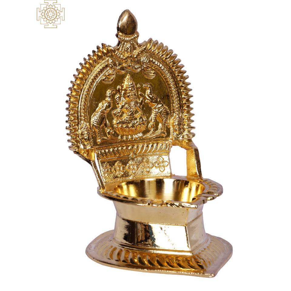 5-Inch Handmade Brass Gajalakshmi Lamp for Home Decor Item and Temple Designer Brass Diya for Puja