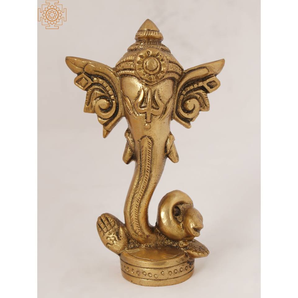 รูปปั้นพระพิฆเนศทองเหลืองสลักรูปตรีศูลทำด้วยมือขนาด5นิ้วผลิตในอินเดีย