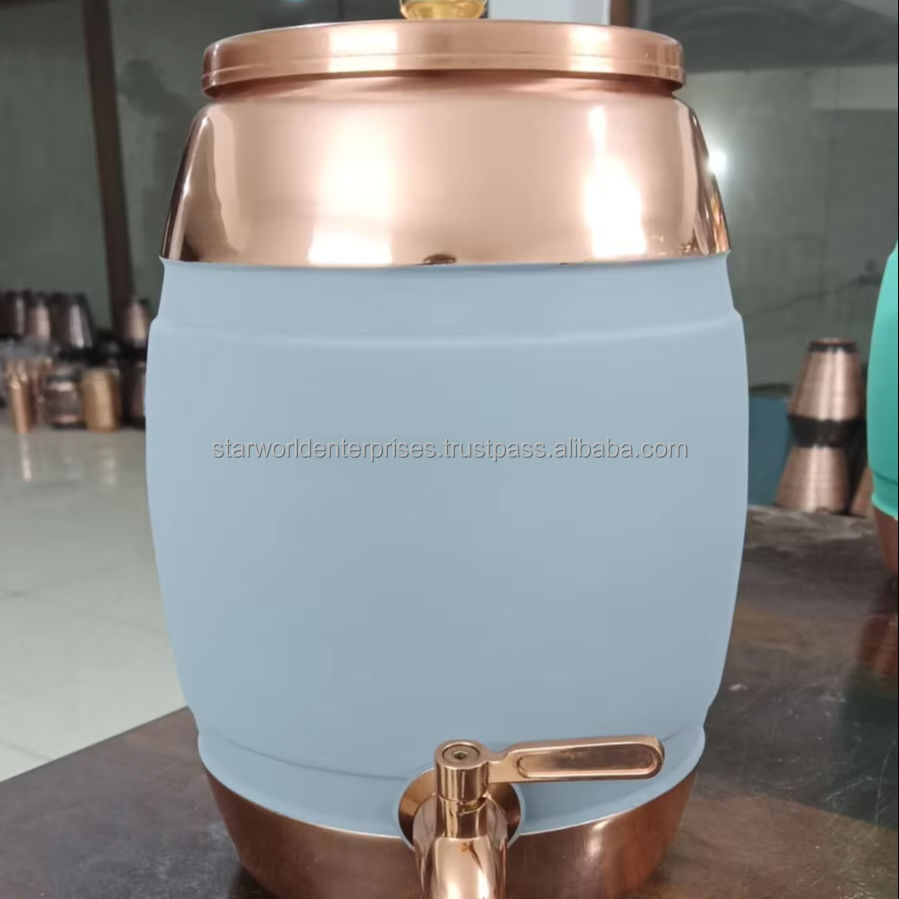 เหยือกน้ำอายุรเวท5ลิตรทำด้วยมือเหยือกน้ำทองแดงบริสุทธิ์ matka พร้อมฝาและหลอดสำหรับใช้ในบ้านและโรงแรมโดยตรงจากอินเดีย