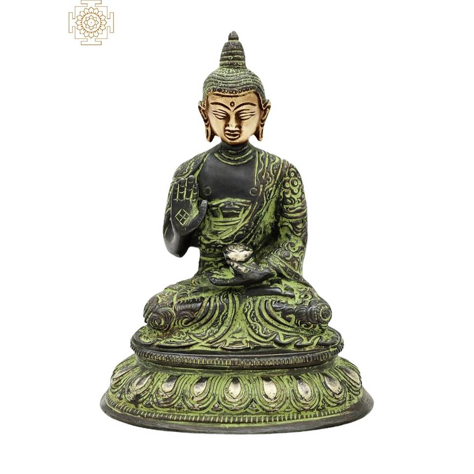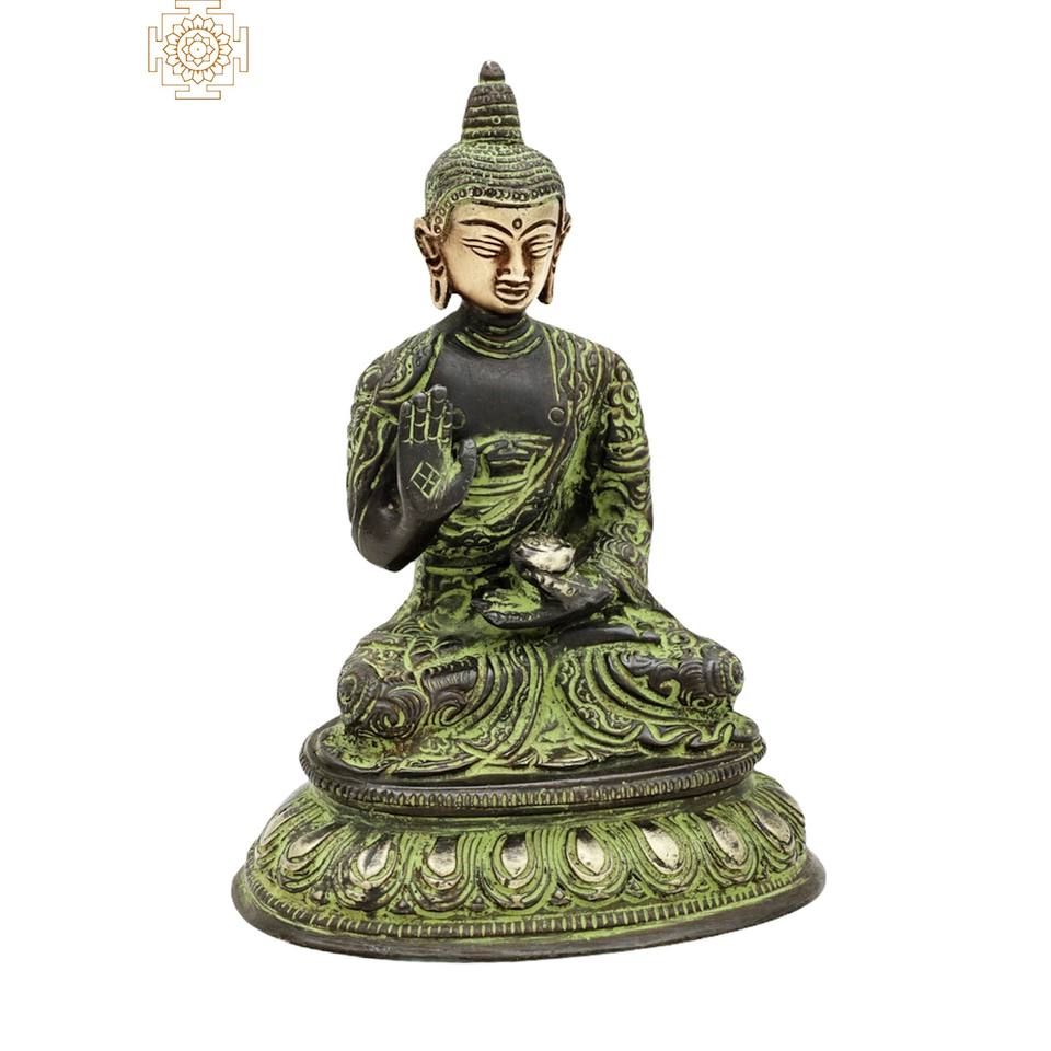 Handmade 6.5 Inches Lord Buddha Brass Statue in Meditation Home Decor Sculpture Item