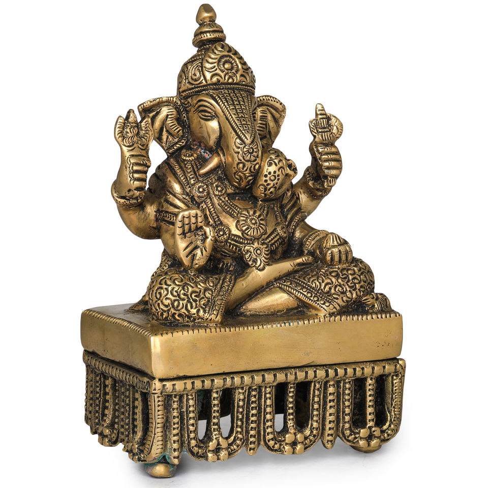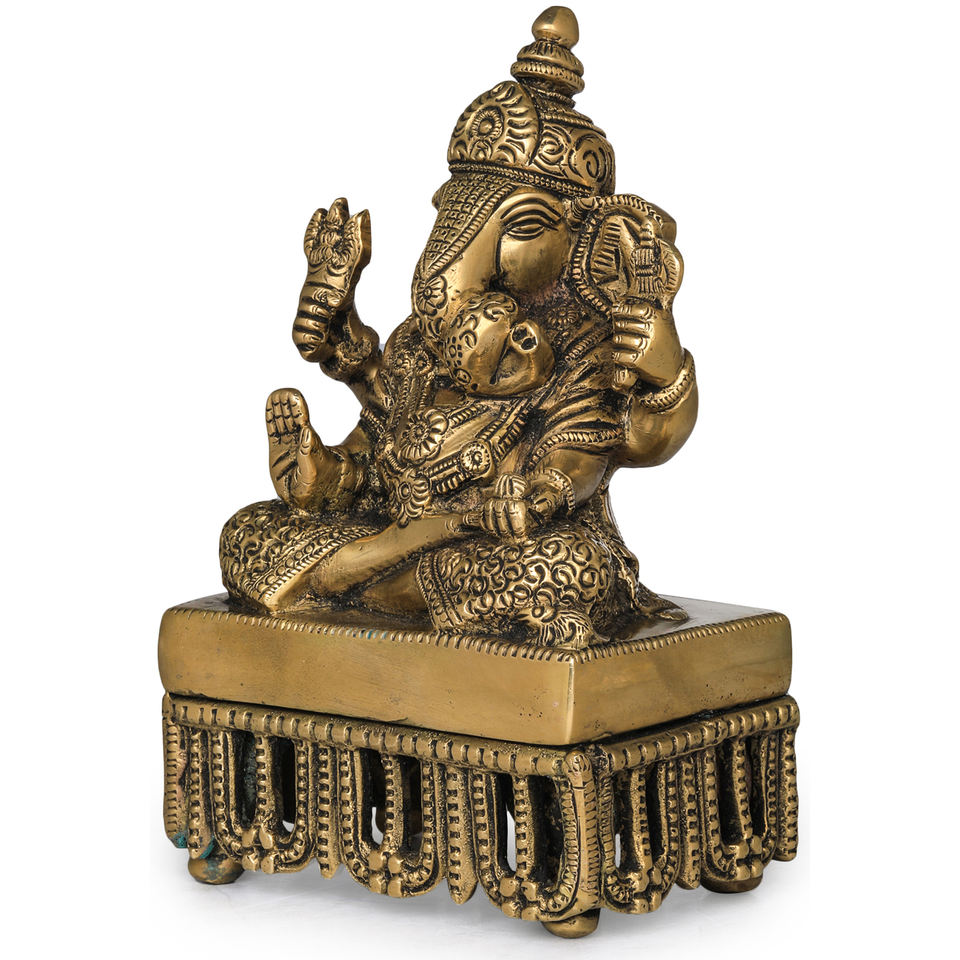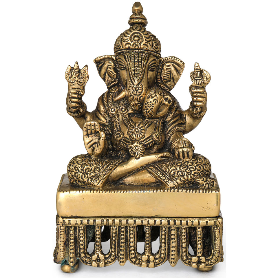 พระพิฆเนศทองเหลืองขนาด6นิ้วทำด้วยมือของตกแต่งบ้านแบบดั้งเดิมของอินเดียสำหรับให้เป็นของขวัญ