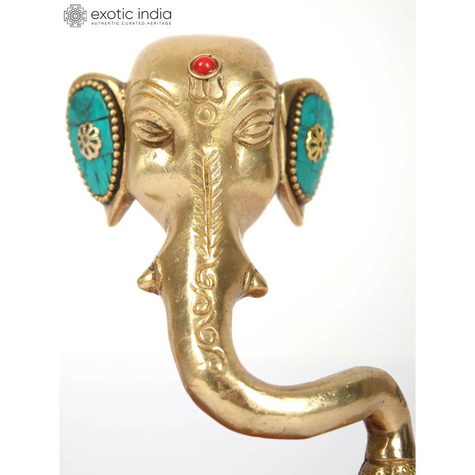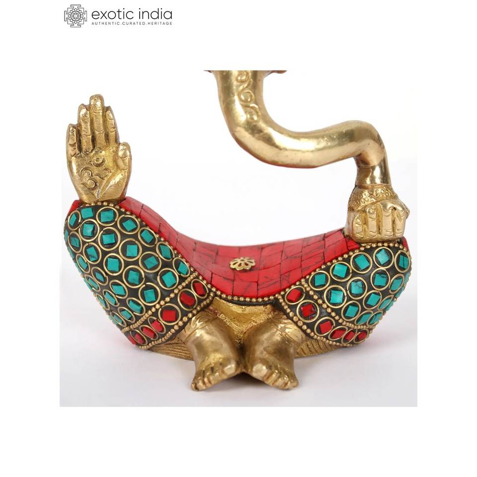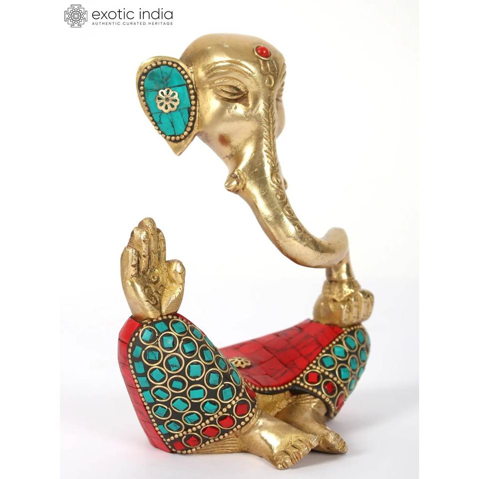 ประติมากรรมพระพิฆเนศทองเหลืองขนาด6นิ้วทำด้วยมือมีการฝังที่ซับซ้อนผลิตในอินเดีย