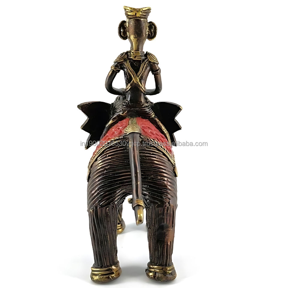 ทำด้วยมือรูปช้างทองเหลืองเผ่าบรอนซ์7.2นิ้วพร้อมรูปผู้ขับขี่ตกแต่งโต๊ะจากรูปปั้นโลหะอินเดีย