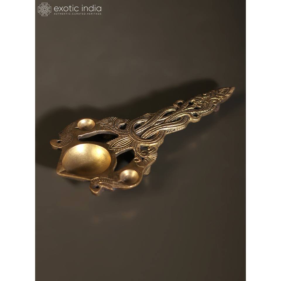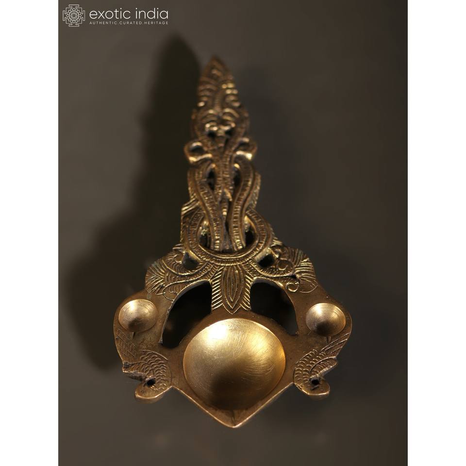 Aarti Diya ทองเหลืองทำด้วยมือขนาด7นิ้วพร้อมที่จับของตกแต่งบ้านที่หรูหราในอินเดีย