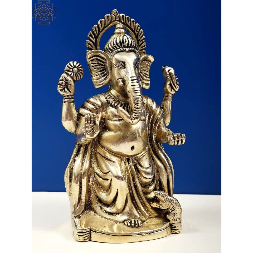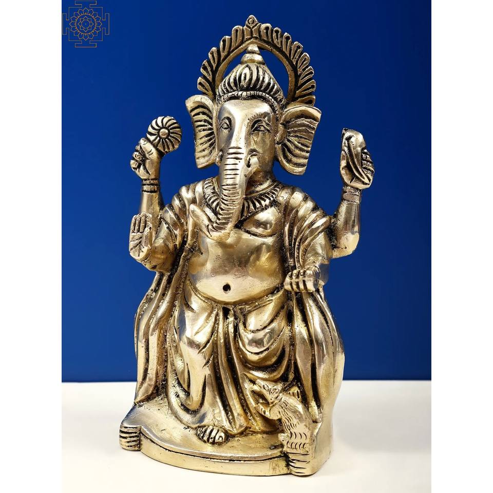 รูปปั้นพระพิฆเนศทองเหลืองขนาด7นิ้วทำด้วยมือท่าพระพิฆเนศ
