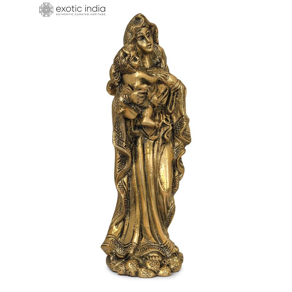 รูปปั้นทองเหลืองขนาด7นิ้วทำด้วยมือของพระแม่มารีย์และพระเด็กทารกทำในอินเดียสำหรับให้เป็นของขวัญ