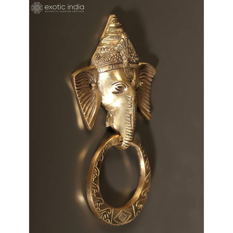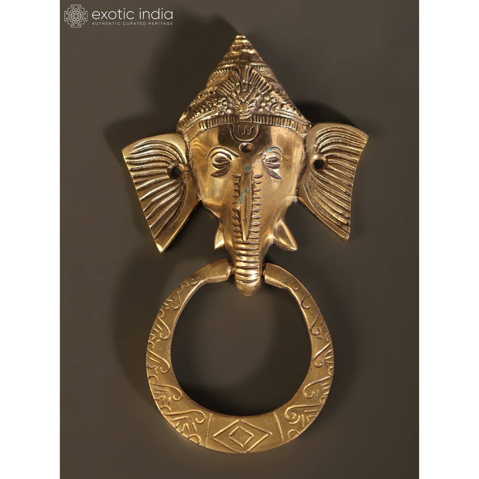 ที่เคาะประตูพระพิฆเนศขนาด7นิ้วทำด้วยมือตกแต่งบ้านด้วยทองเหลืองรูปปั้นทำในอินเดีย