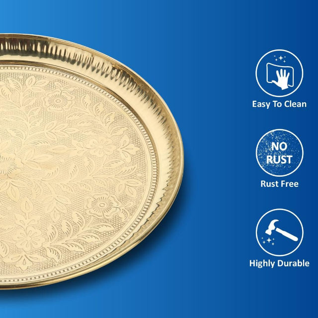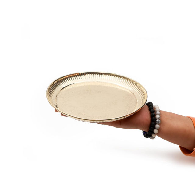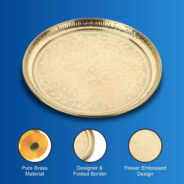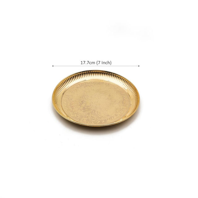 งานทำด้วยมือทองเหลืองแท้7นิ้วพร้อมลายนูนดอกไม้หรูหราออกแบบสำหรับงานแต่งงานและดิวาลีงานฝีมือโลหะเคลือบทอง