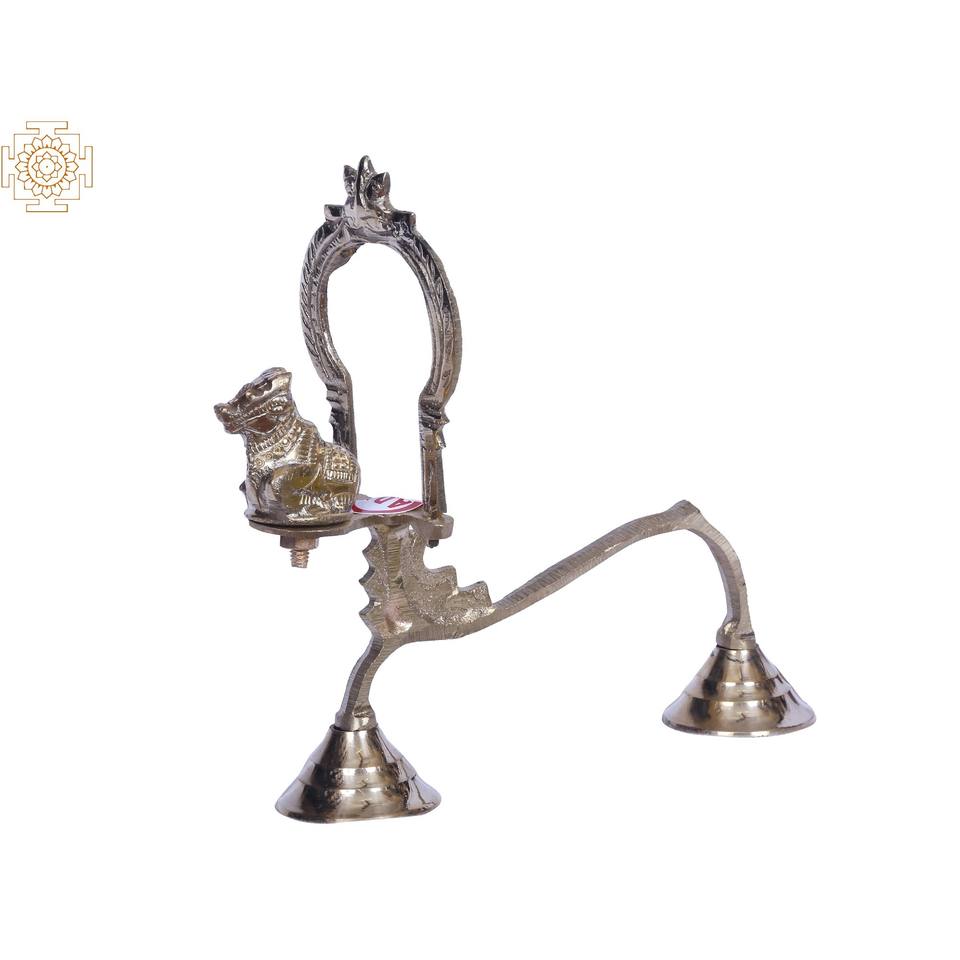 Shodash upachara Nandi โคมไฟทองเหลืองขนาด8นิ้วทำด้วยมือของตกแต่งบ้านผลิตในอินเดีย