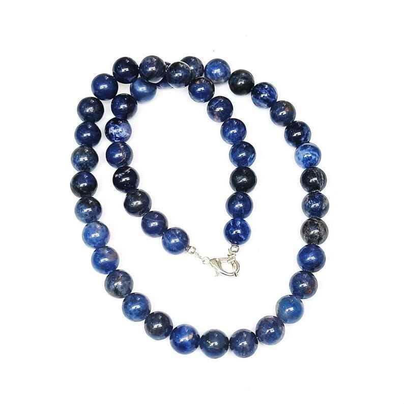 สร้อยคอลูกปัดคริสตัลขนาด8มม. ทำด้วยมือเครื่องประดับหินโซดาไลต์ธรรมชาติดีไซน์งานฝีมือที่ไม่เหมือนใคร