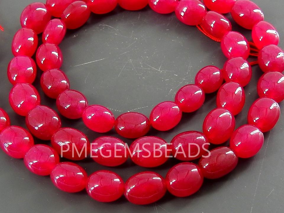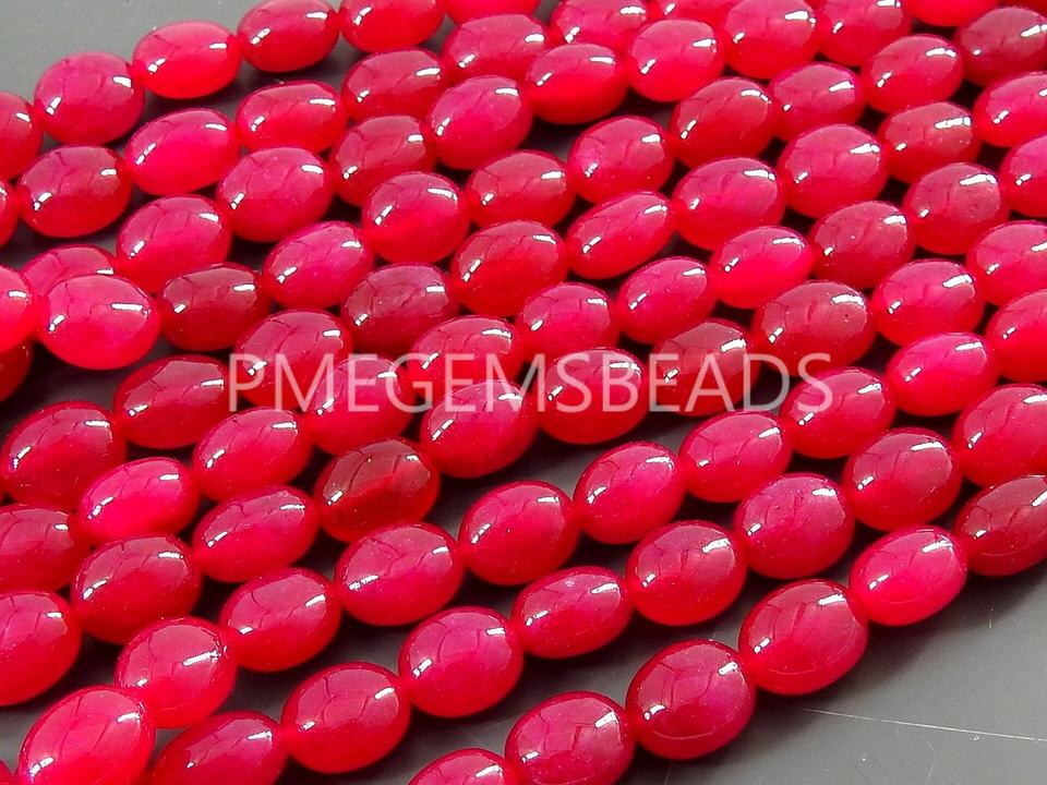 สร้อยคอลูกปัด9นิ้วทำด้วยมือ Rubellite สีชมพูควอตซ์เรียบหินวงรีทรงรีตัดไฮโดรหินหลวม10-8มม. ขายส่ง