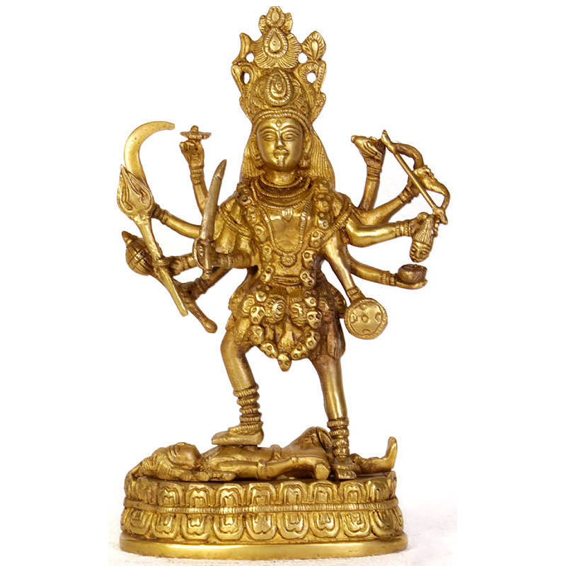 รูปปั้นเทพธิดาคาลีขนาด9นิ้วทำด้วยมือทองเหลืองสิบมือสำหรับเป็นของขวัญผลิตในอินเดีย