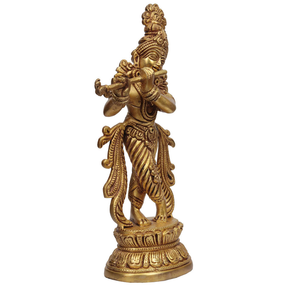 รูปปั้นทองเหลืองพระกฤษณะขนาด9นิ้วทำด้วยมืองานวิจิตรศิลป์อินเดีย