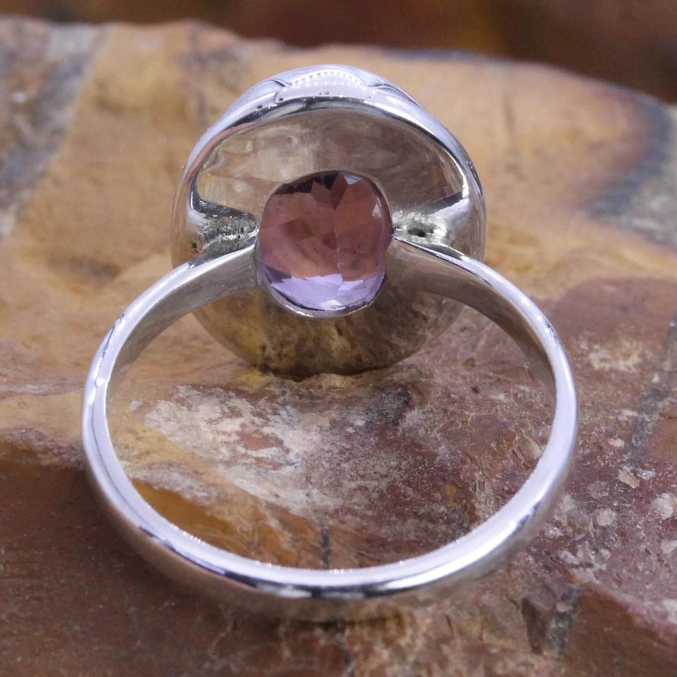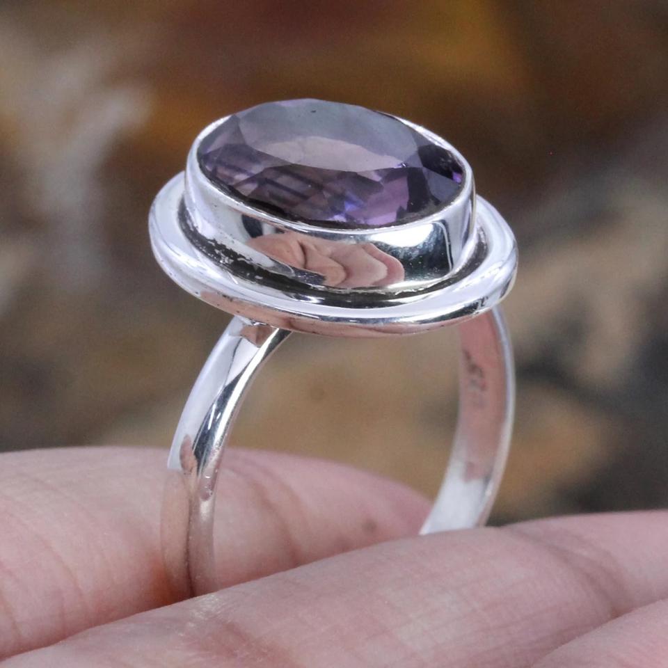 แหวนพลอยอเมทิสต์ทำด้วยมือสีเงิน925สำหรับผู้หญิงพลอยทรงรีตัดเครื่องประดับดีสำหรับงานแต่งงานหรือสวมใส่ในชีวิตประจำวัน