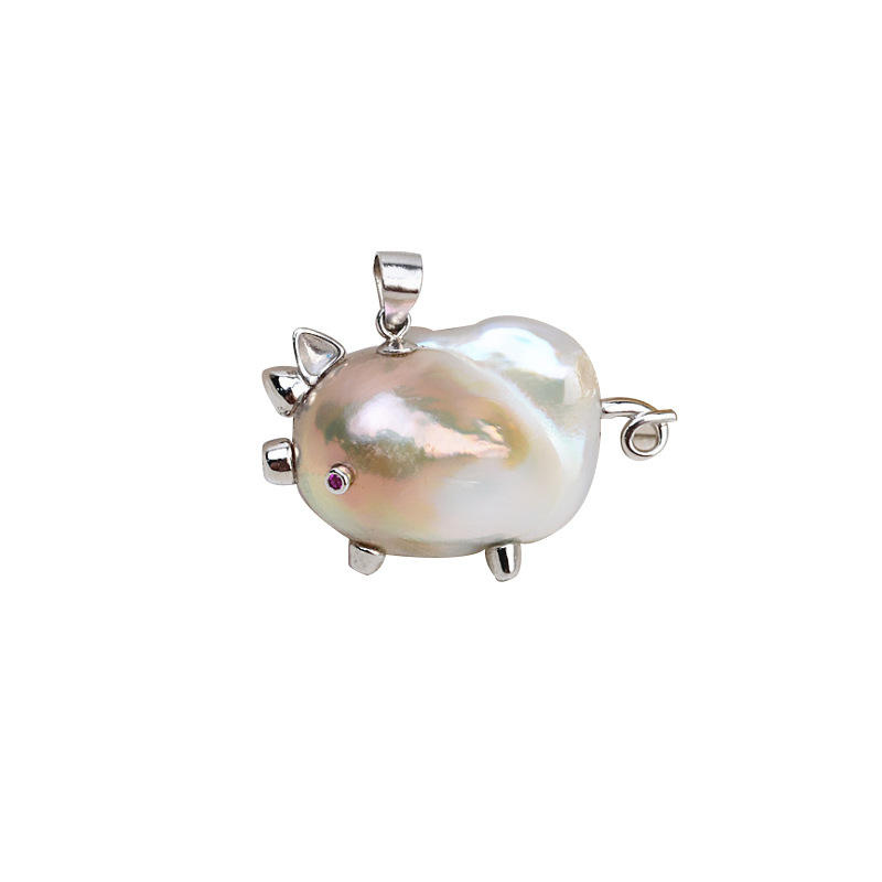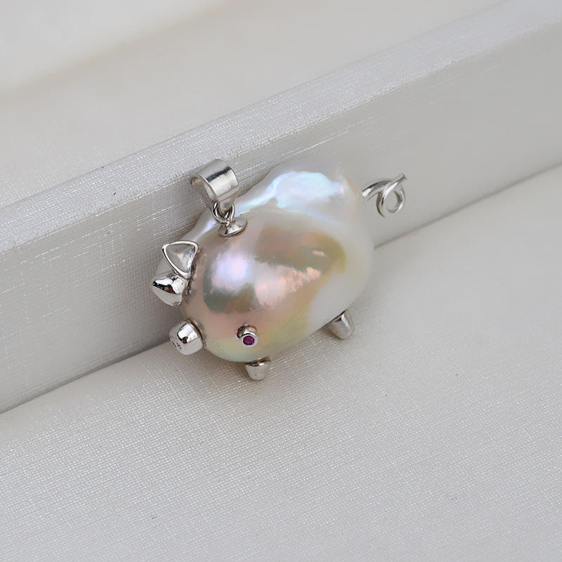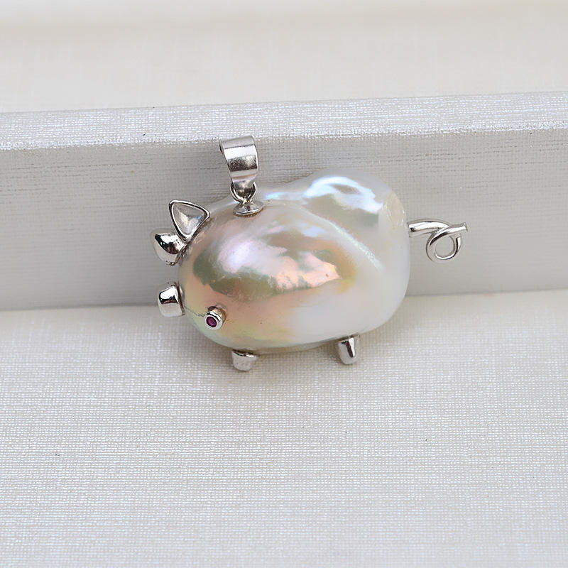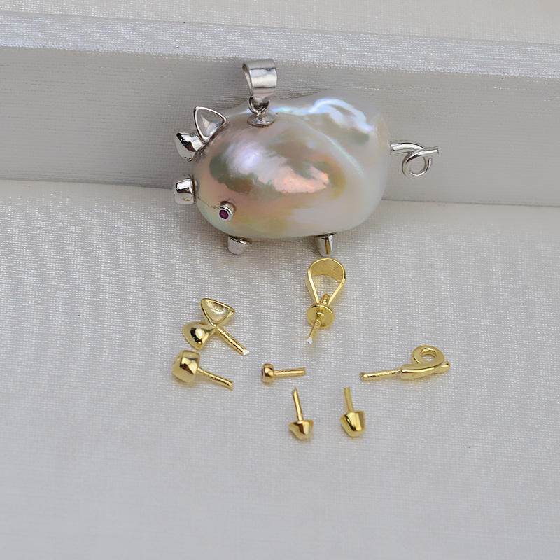 จี้ไข่มุกบาโรกเงินแท้ 925 ทำมือสำหรับผู้หญิง พร้อมฐานไข่มุกเปล่ารูปหมู สำหรับงาน DIY อุปกรณ์และส่วนประกอบเครื่องประดับ
