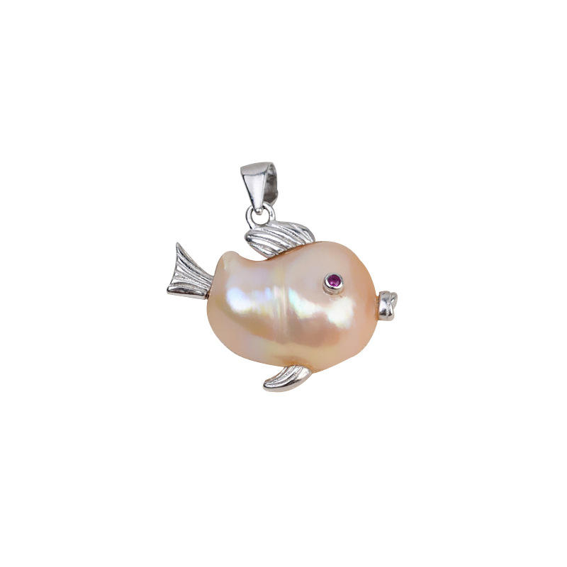 จี้ไข่มุกบาร็อคเงินแท้ 925 ทำมือ รูปปลาเล็ก สร้อยคอ ตัวเรือนเปล่า อุปกรณ์ DIY จี้ไข่มุกสำหรับผู้หญิง