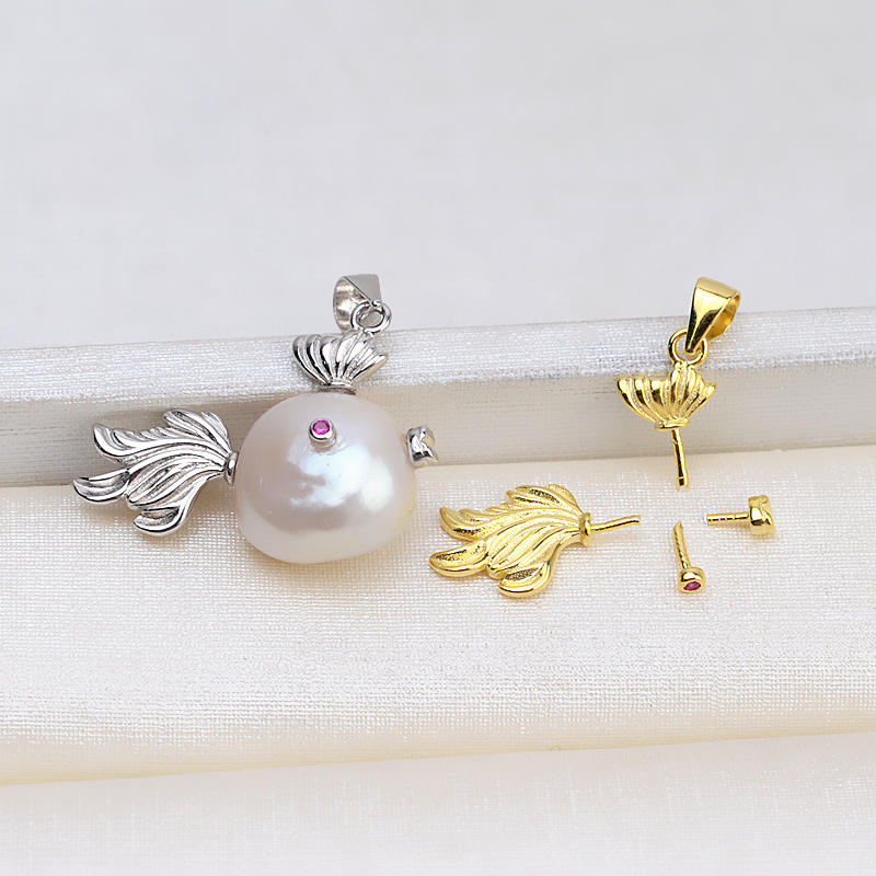 จี้ไข่มุกบาร็อคเงินแท้ 925 ทำมือ รูปปลาเล็ก สำหรับผู้หญิง ฐานเปล่าสำหรับงาน DIY อุปกรณ์ทำเครื่องประดับ หมายเลขสินค้า 1731